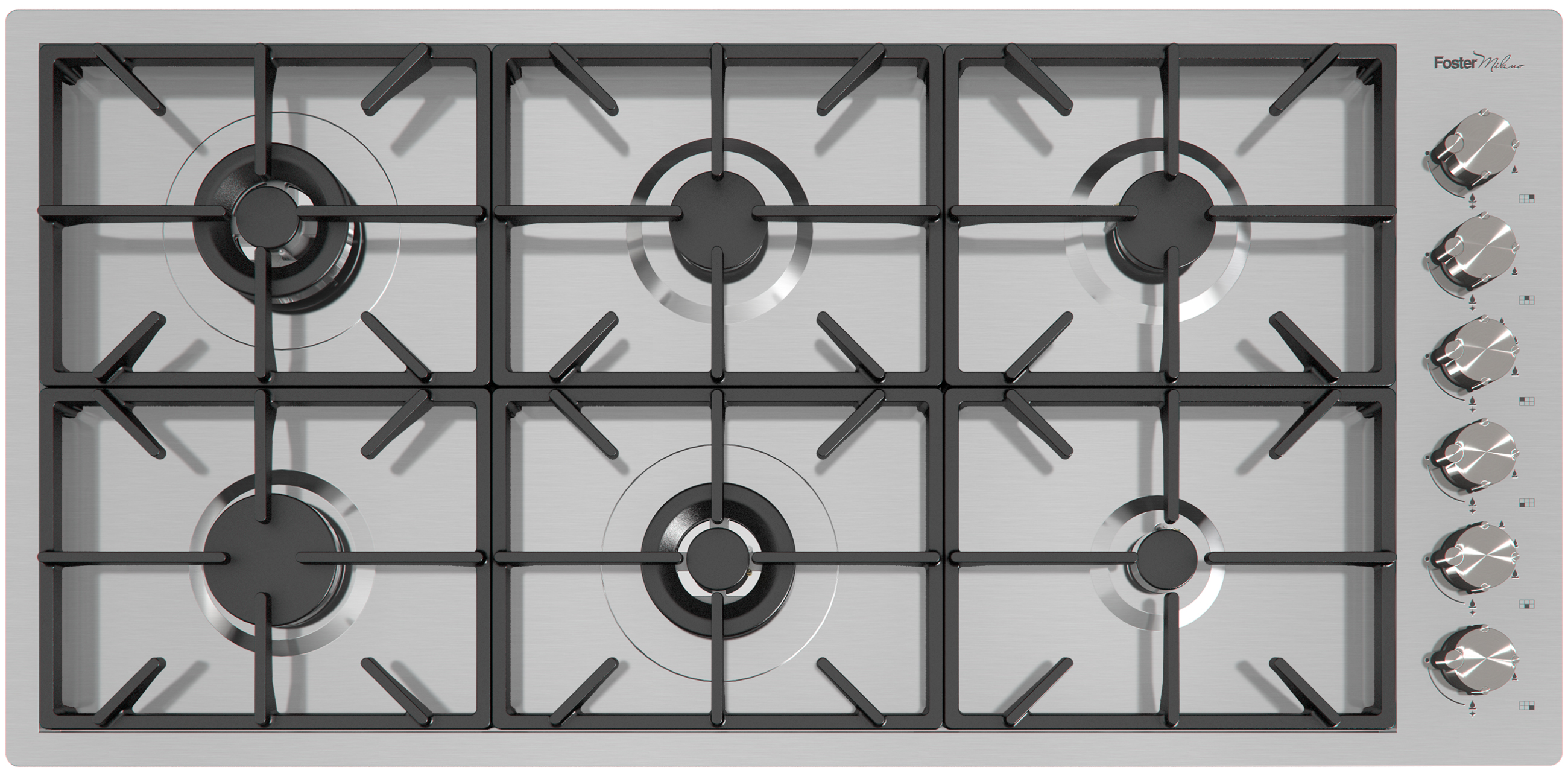 Foster Milano 45.44" Gas Cooktop-Stainless Steel with 6 burners, metal knobs and satin finishRead More
