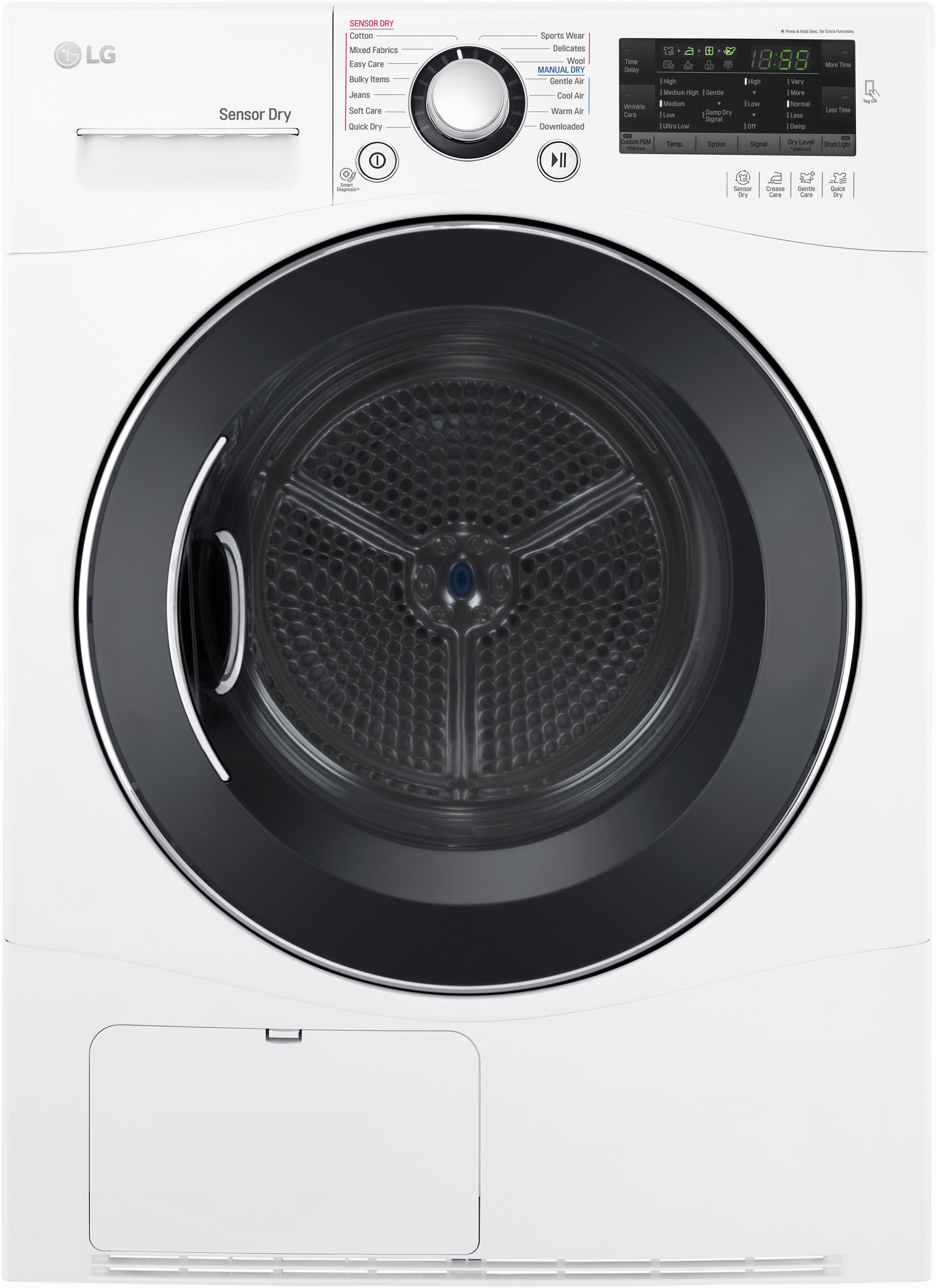 Here to Help If you ever experience an issue with your LG dryer, you don't have to worry. The SmartDiagnosis™ feature helps the service center diagnose problems over the phone, or with a simple app on your smart phone, helping you minimize costly, inconvenient service calls.