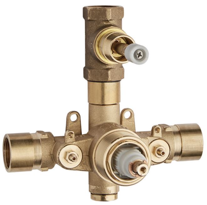 Rough in, 3/4” concealed thermostatic valve for shower with built-in 3/4” ceramic discs with 90 ° and volume control. flow rate: 10 GPM (45 PSI).Read More