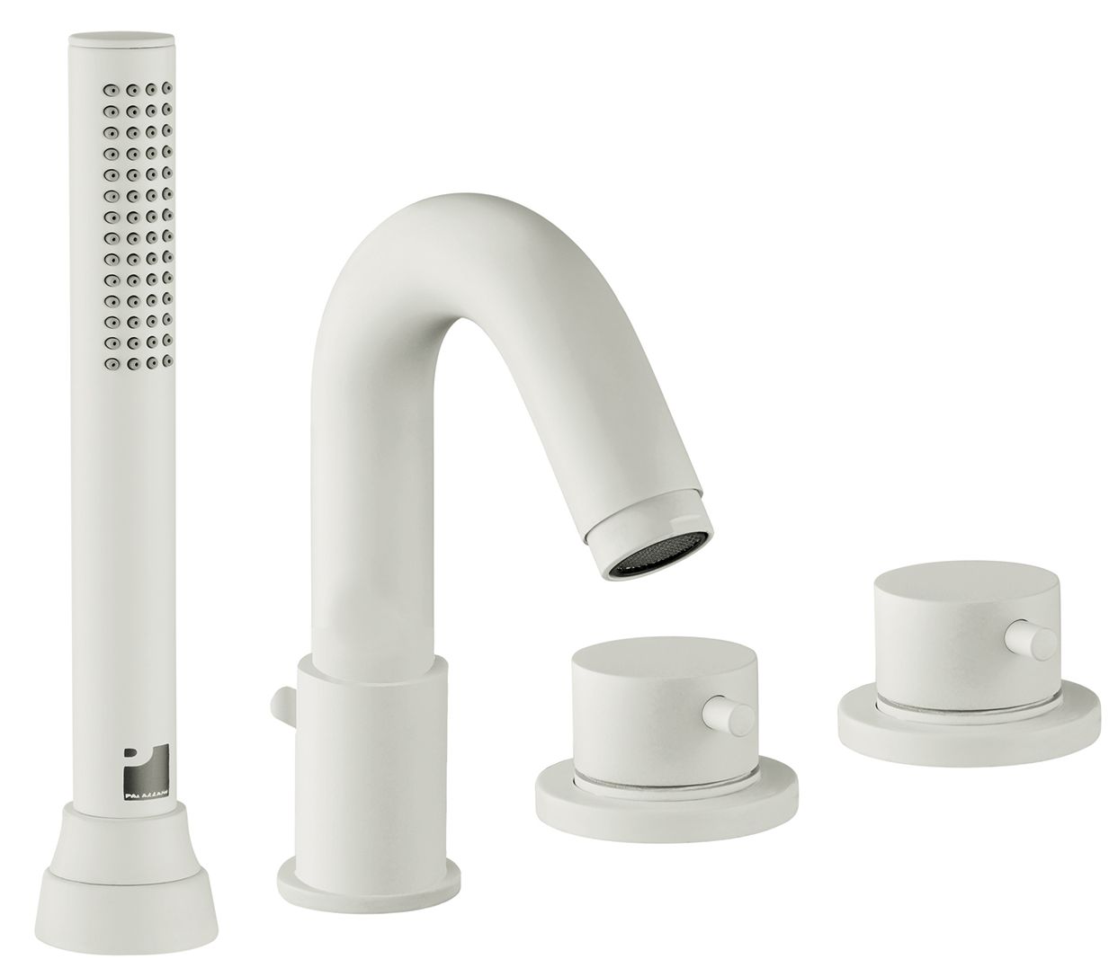 Complete deck-mount Roman bathtub faucet mixer 4 holes, complete with diverter on the spout, handshower and flexible Gliss shower hose, 59’’ length, connection 1/2’’. max flow: 6.3 GPM.Read More